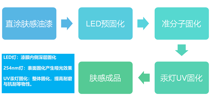 膚感漆+LED燈+準(zhǔn)分子燈+汞燈固化,設(shè)備要求相對(duì)高。 |